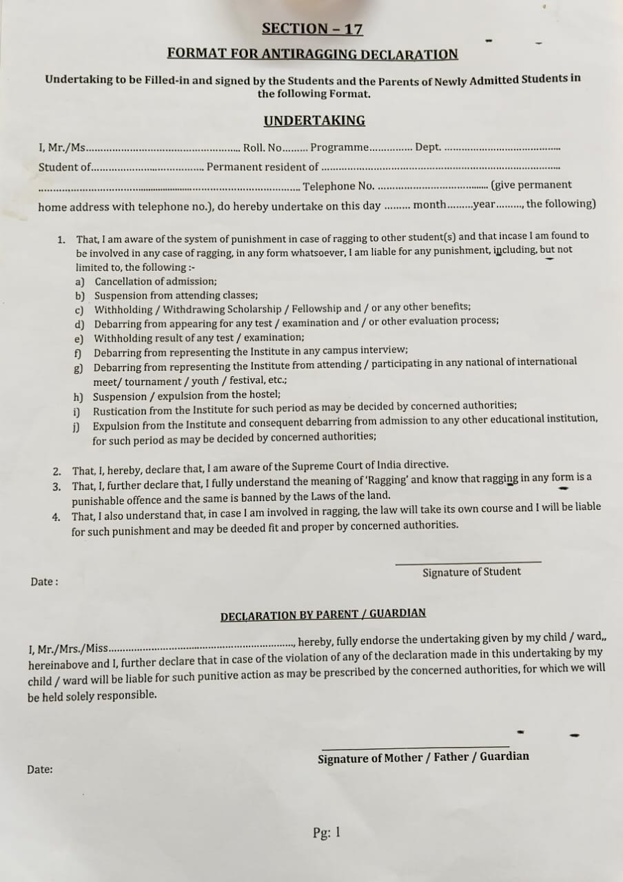 Anti-ragging declaration form