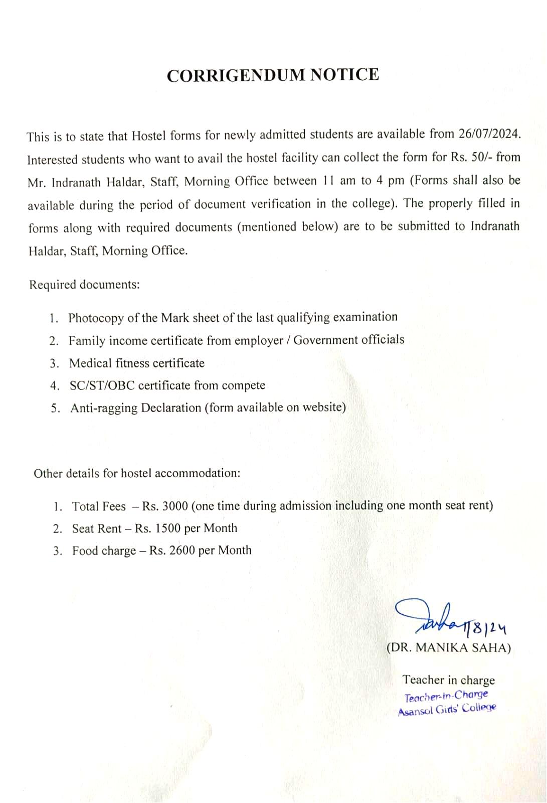 Notice for Orientation for newly admitted student (1st Sem-2024) |